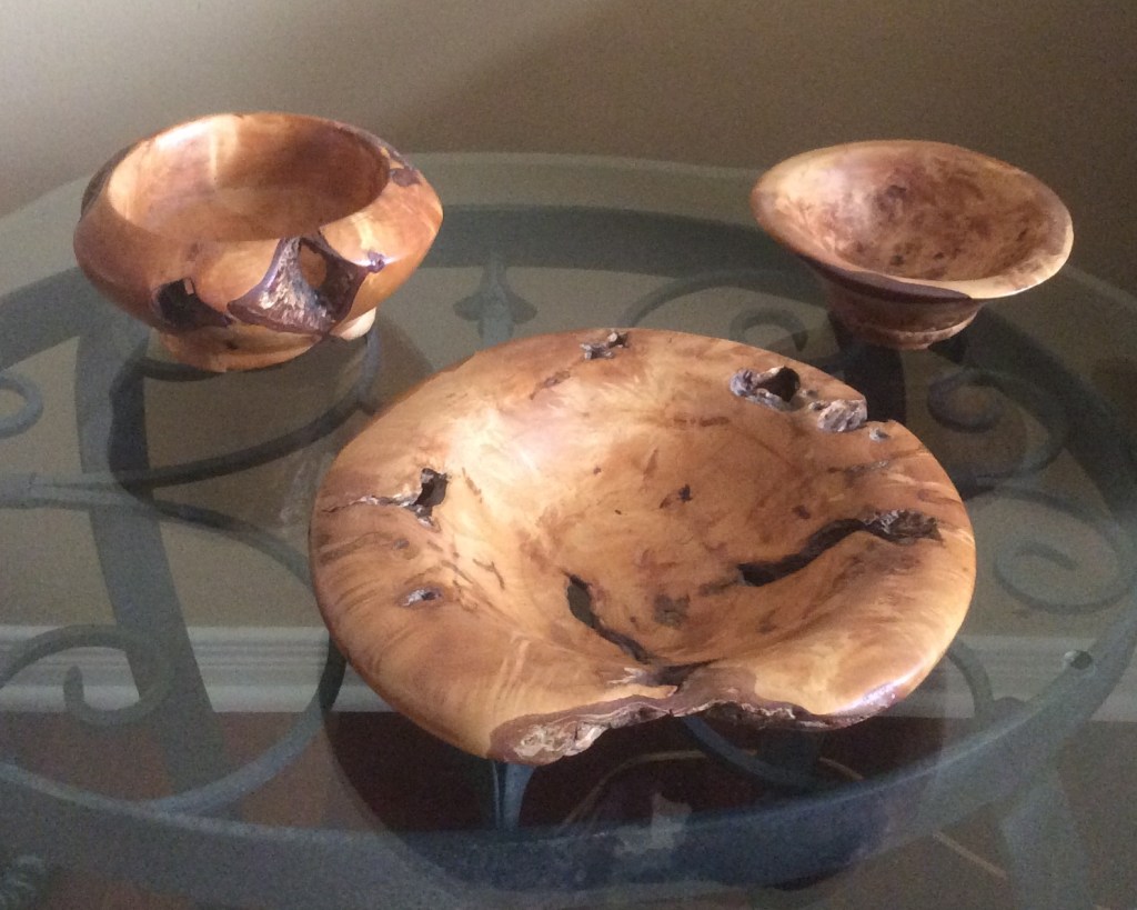 Woodworking has been my passion from an early age. After a long and rewarding professional career, I was able to devote a great deal of time to develop my artistic side. What I loved most about working with wood was the ability to mould it into any desired shape. Wood turning in particular opened a whole new world for me. As the wood turned on the lathe, the shapes came to me almost instinctively, as if a higher power was guiding my hands. I was able to mix exotic woods from all over the world to introduce various colours and grains to my pieces.